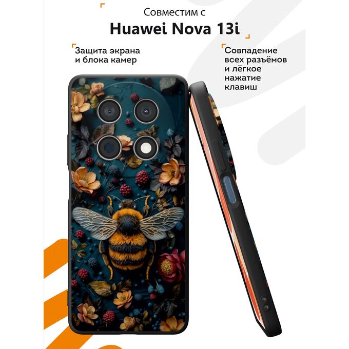Силиконовый чехол Mcover на Huawei Nova 13i, с принтом Шмель в цветах