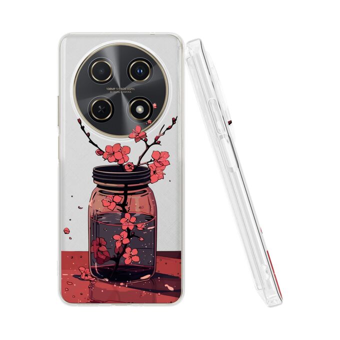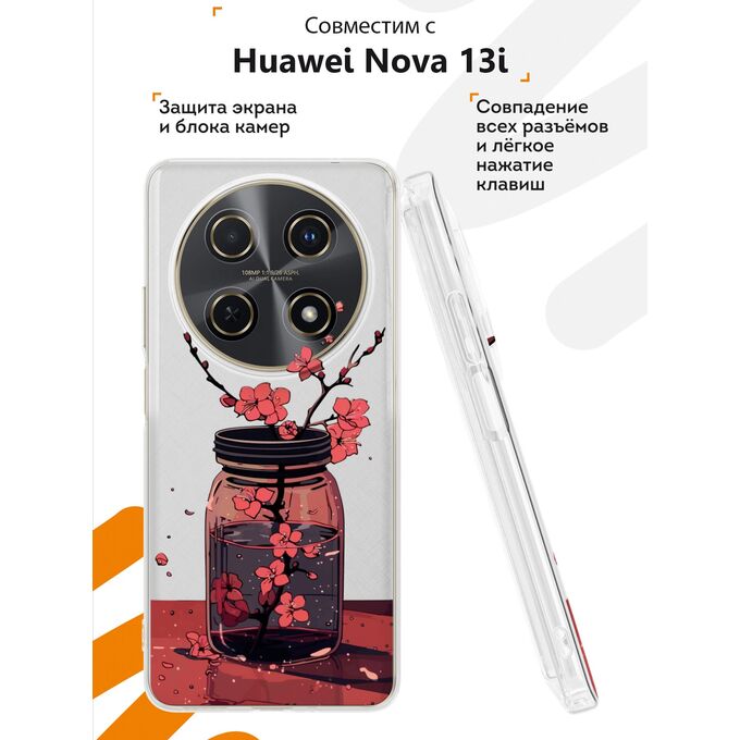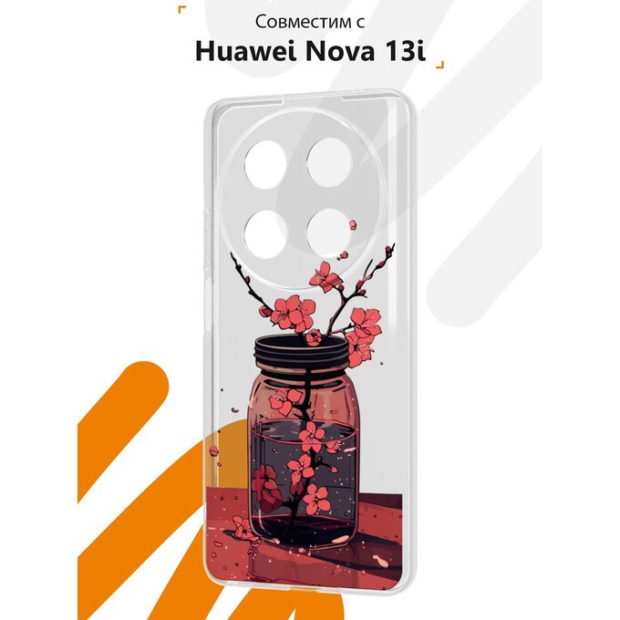 Силиконовый чехол Mcover на Huawei Nova 13i, Сакура в стакане