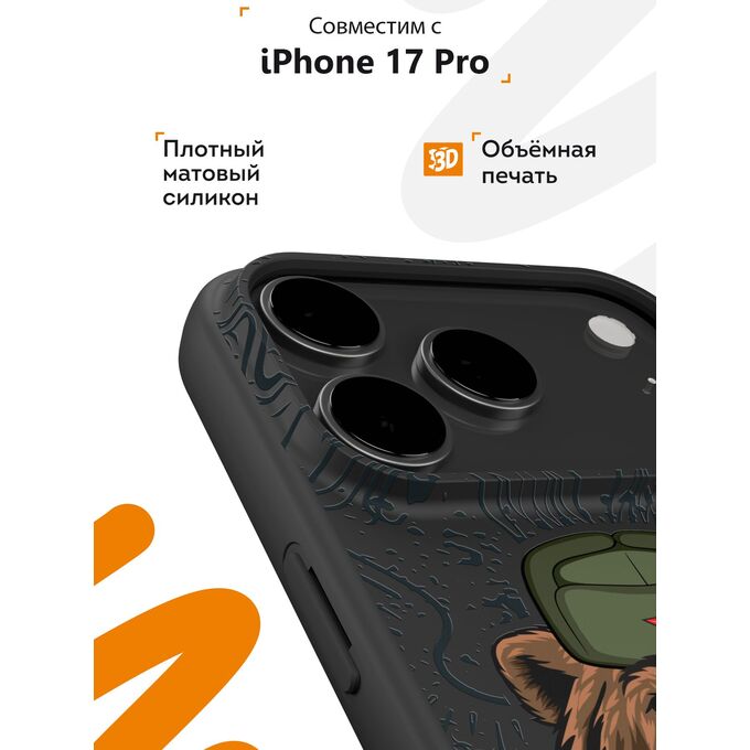 Силиконовый чехол Mcover на iPhone 17 Pro, Русский медведь