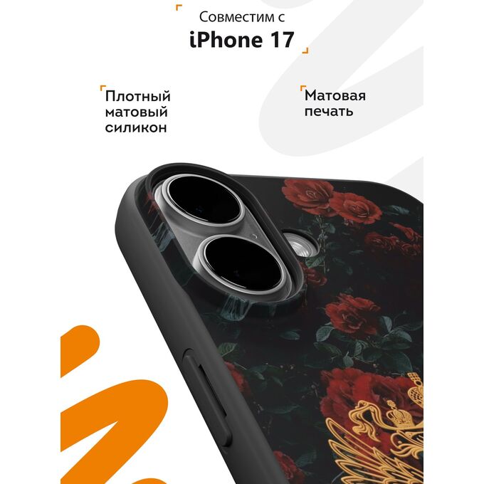 Силиконовый чехол Mcover на iPhone 17, с принтом Герб РФ на фоне роз