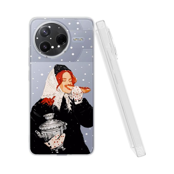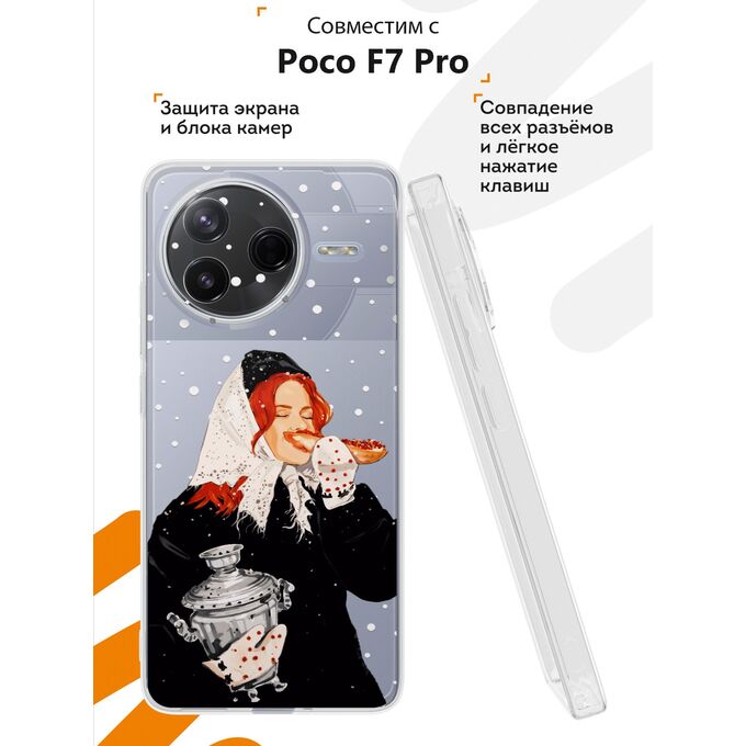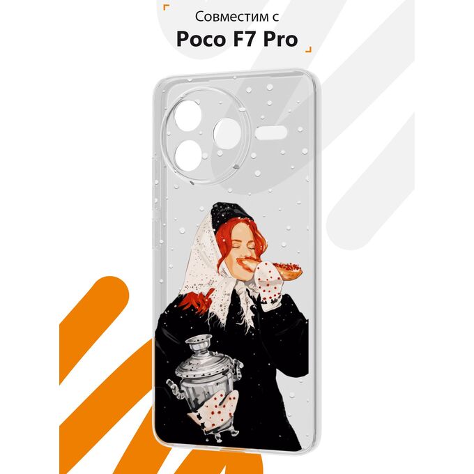 Силиконовый чехол Mcover на Poco F7 Pro, с принтом Рыжая девушка с самоваром