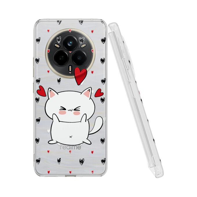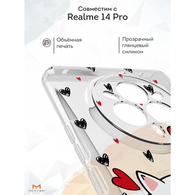 Силиконовый чехол Mcover на Realme 14 Pro, Котик в сердцах