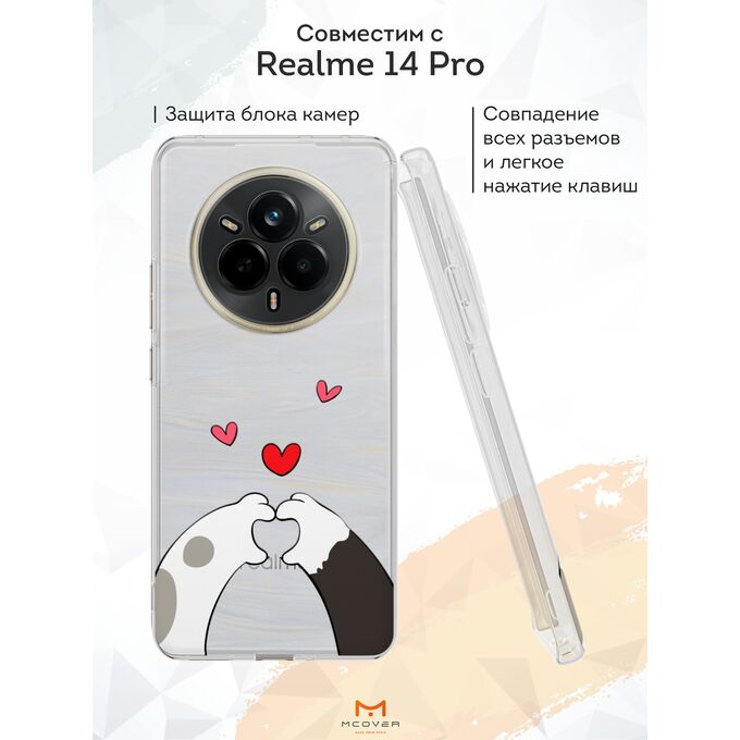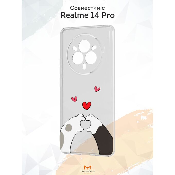 Силиконовый чехол Mcover на Realme 14 Pro, Лапки с сердцем