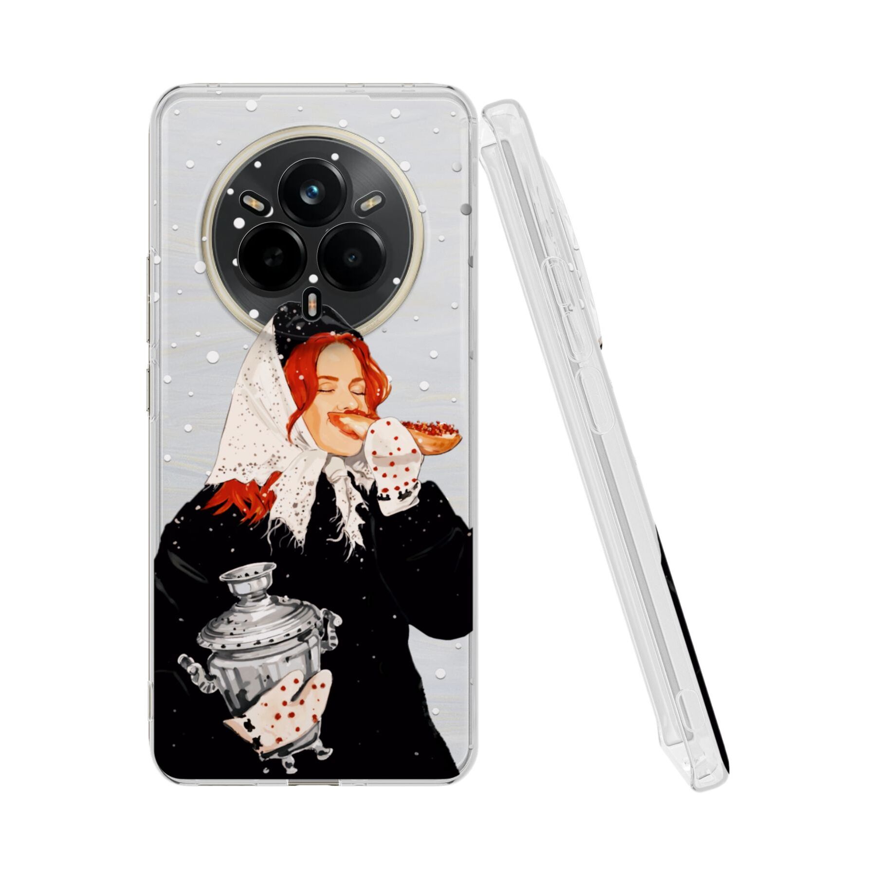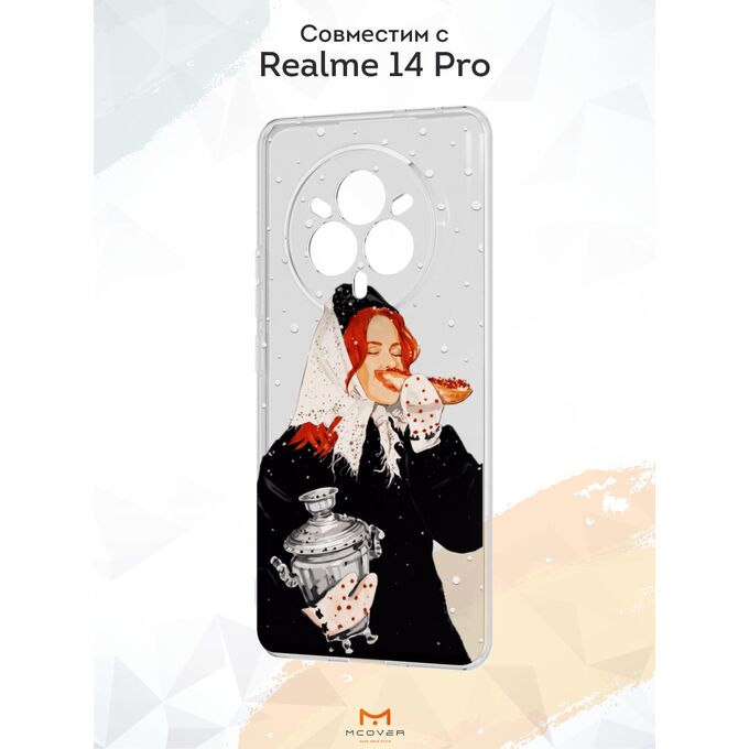 Силиконовый чехол Mcover на Realme 14 Pro, с принтом Рыжая девушка с самоваром