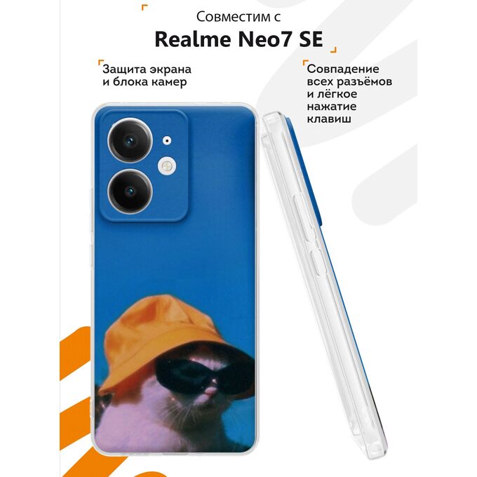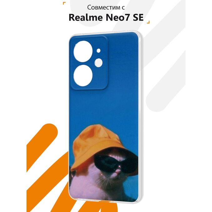 Силиконовый чехол Mcover на Realme Neo7 SE, Кот в очках и шляпе
