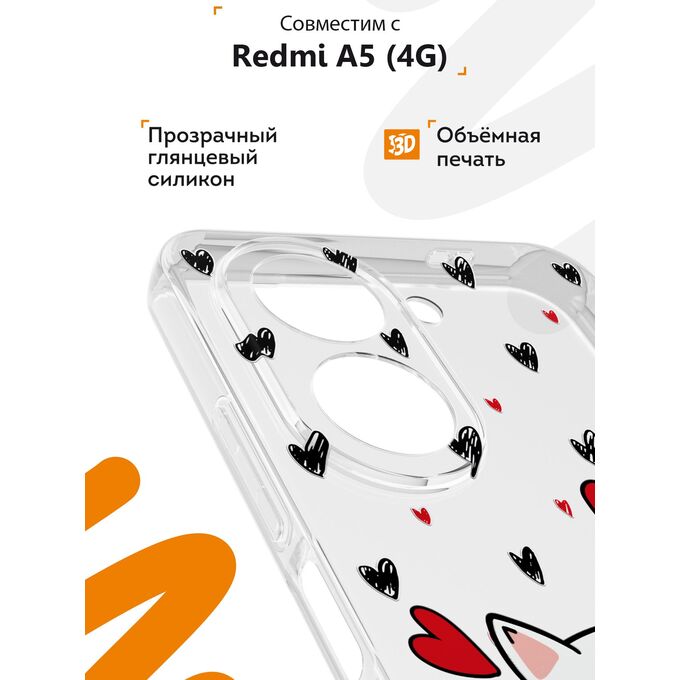 Силиконовый чехол Mcover на Redmi A5 (4G), Котик в сердцах