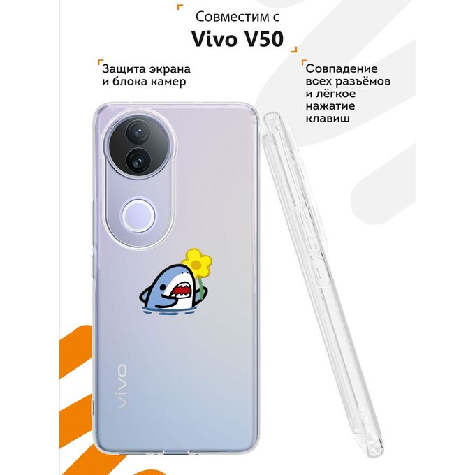 Силиконовый чехол Mcover на Vivo V50, Акула с цветком