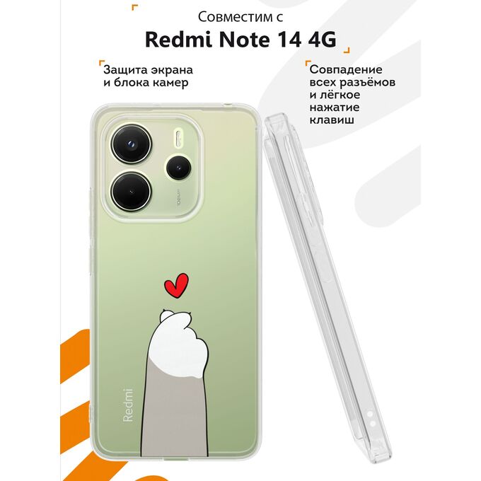 Силиконовый чехол Mcover на Xiaomi Redmi Note 14 4G, Лапка с сердцем