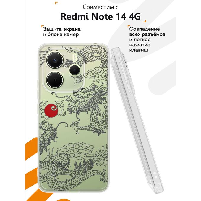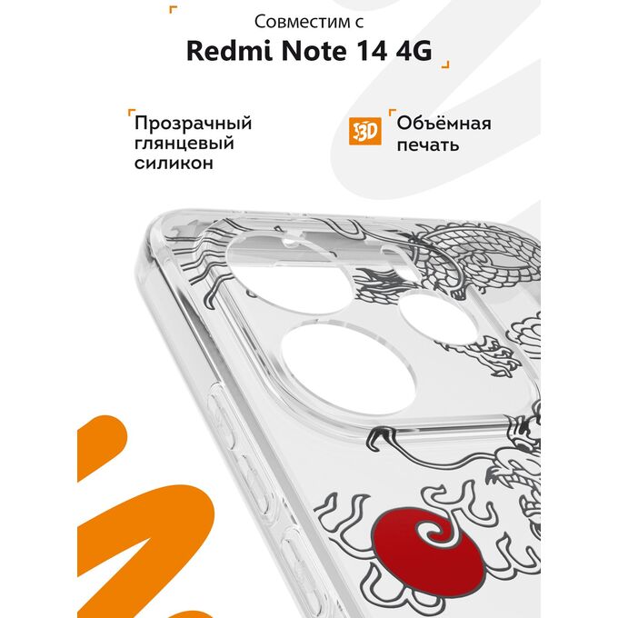 Силиконовый чехол Mcover на Xiaomi Redmi Note 14 4G, Японский дракон инь, аниме