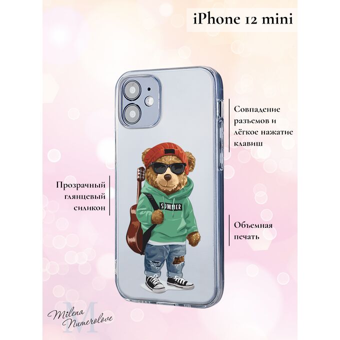 Силиконовый чехол Milena Numerolove для iPhone 12 mini (Айфон 12 мини), Гитара и медведь