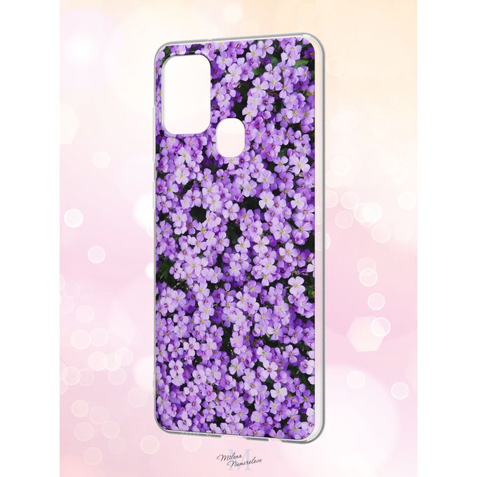 Силиконовый чехол Milena Numerolove для Galaxy A21s (Галакси А21с), Фиолетовые цветы