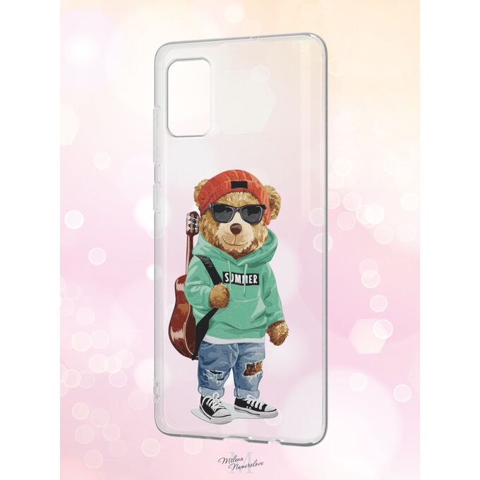 Силиконовый чехол Milena Numerolove для Galaxy A71 (Галакси А71), Гитара и медведь