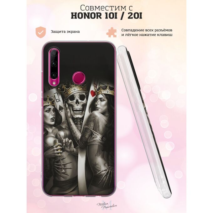 Чехол для смартфона Honor 10i/Honor 20i - неотъемлемый аксессуар каждого современного человека. Премиальные износостойкие краски и лаки, качественные материалы изделия, японское оборудование и контроль качества производства - это то, что позволяет нам выгодно выделяться среди конкурентов и производить не только красивые, но тактильно приятные чехлы для Хонор 10и 20и П смарт плюс 2019, которые долгое время не теряют первоначального вида.