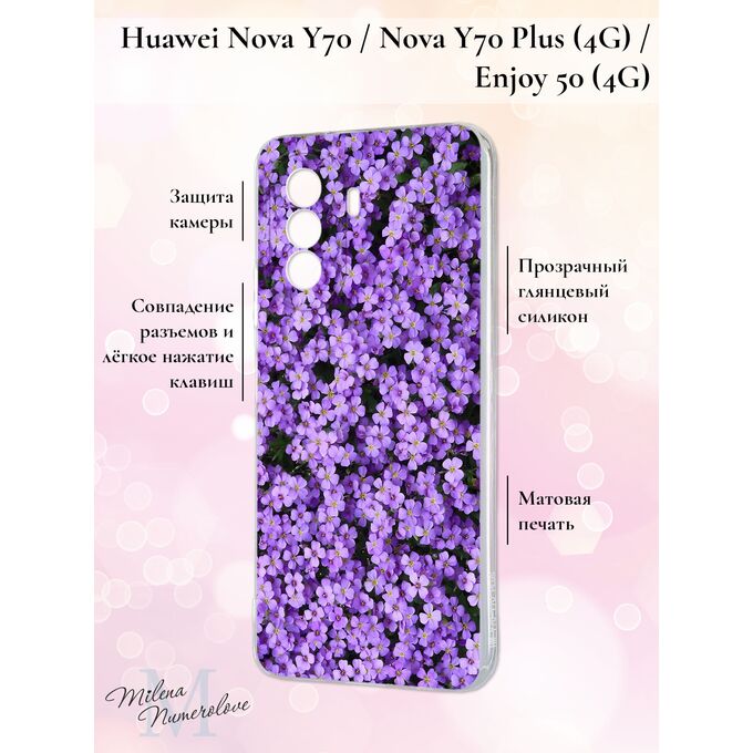 Силиконовый чехол Milena Numerolove для Nova Y70 Plus/Nova Y70/Huawei Enjoy 50 (Нова У70, Ю 70 Плюс, Хуавей Энджой 50), Фиолетовые цветы