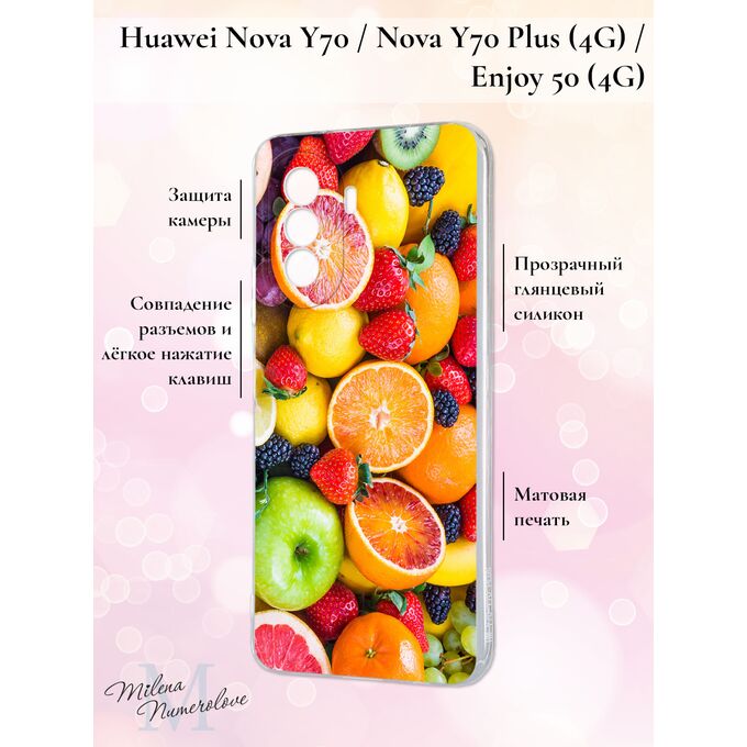 Силиконовый чехол Milena Numerolove для Nova Y70 Plus/Nova Y70/Huawei Enjoy 50 (Нова У70, Ю 70 Плюс, Хуавей Энджой 50), Сочные фрукты