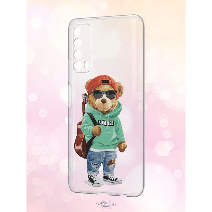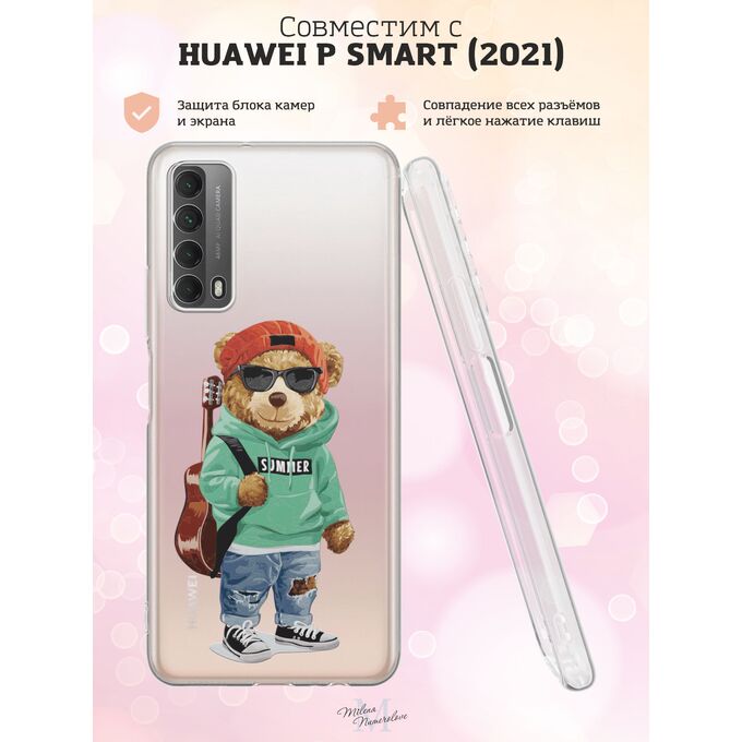 Силиконовый чехол Milena Numerolove для Huawei P smart 2021 (Хуавей П смарт 2021), Гитара и медведь