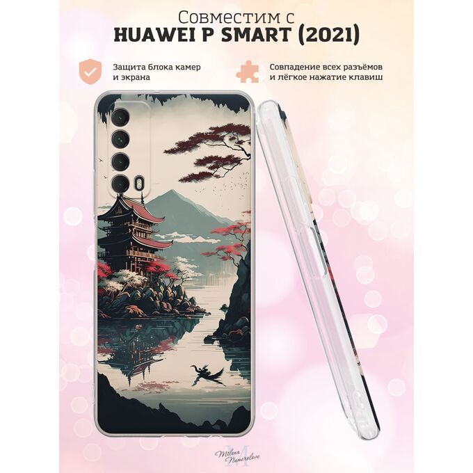 Силиконовый чехол Milena Numerolove для Huawei P smart 2021 (Хуавей П смарт 2021), Японский пейзаж 2