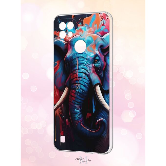 Силиконовый чехол Milena Numerolove для realme C21 (Реалми С21), Слон и акварель