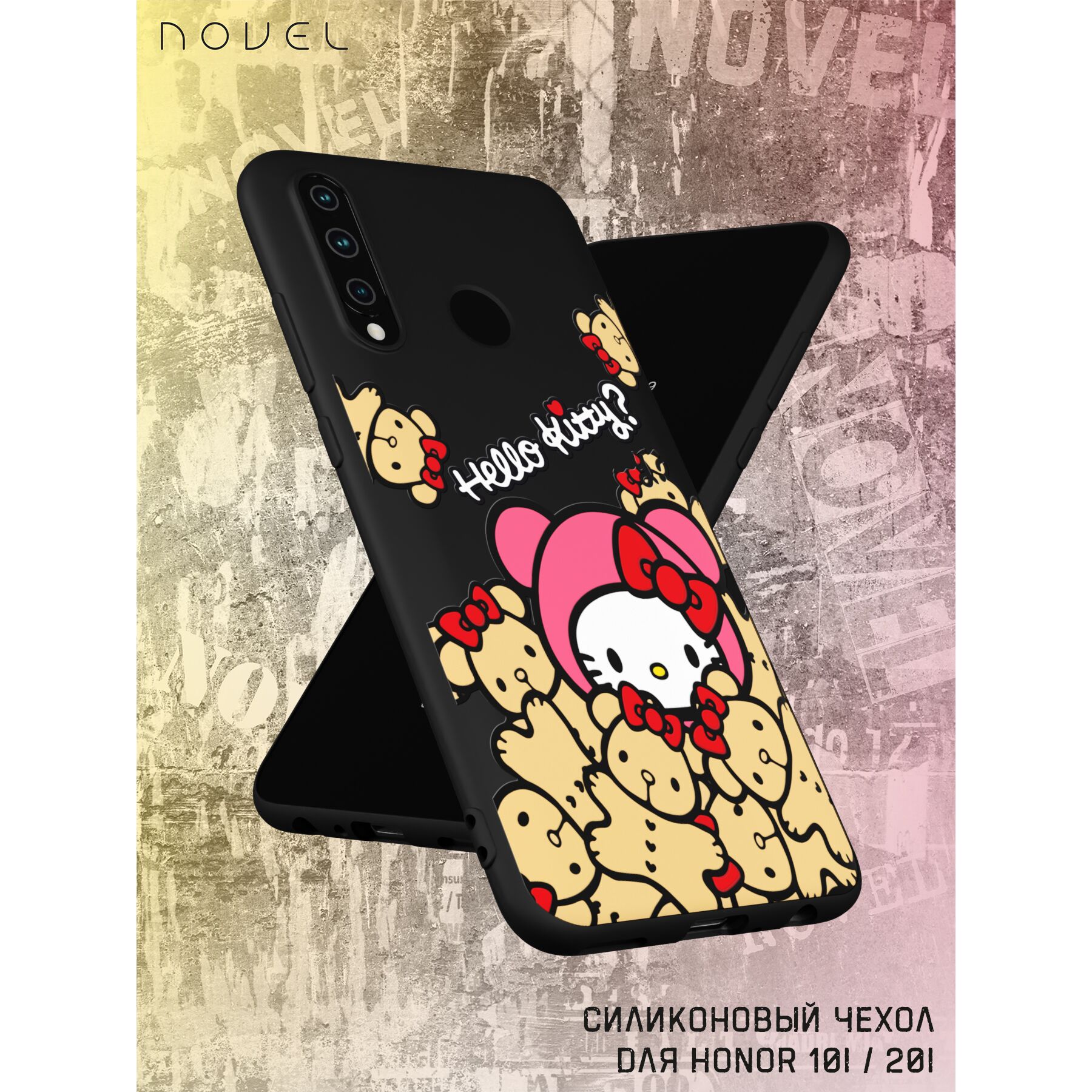 Силиконовый чехол NOVEL для Honor 10i/Honor 20i/Huawei P smart+ 2019 (Хонор 10и 20и П смарт плюс 2019), Хеллоу Китти и медведи