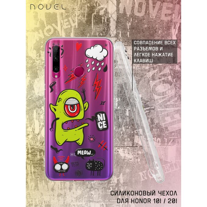 Силиконовый чехол NOVEL для Honor 10i/Honor 20i/Huawei P smart+ 2019 (Хонор 10и 20и П смарт плюс 2019), Стильный Инопланетянин