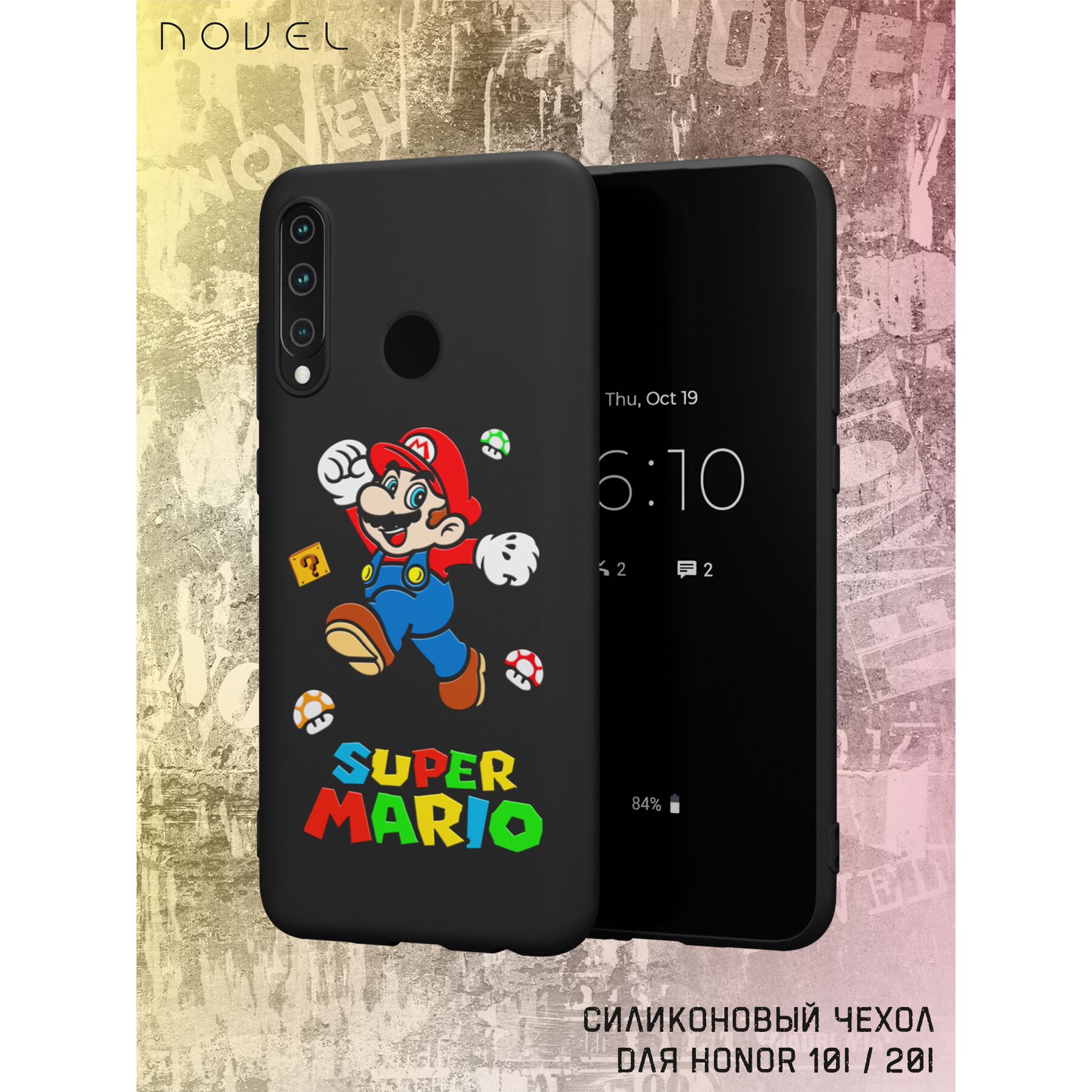 Силиконовый чехол NOVEL для Honor 10i/Honor 20i/Huawei P smart+ 2019 (Хонор 10и 20и П смарт плюс 2019), Супер Марио
