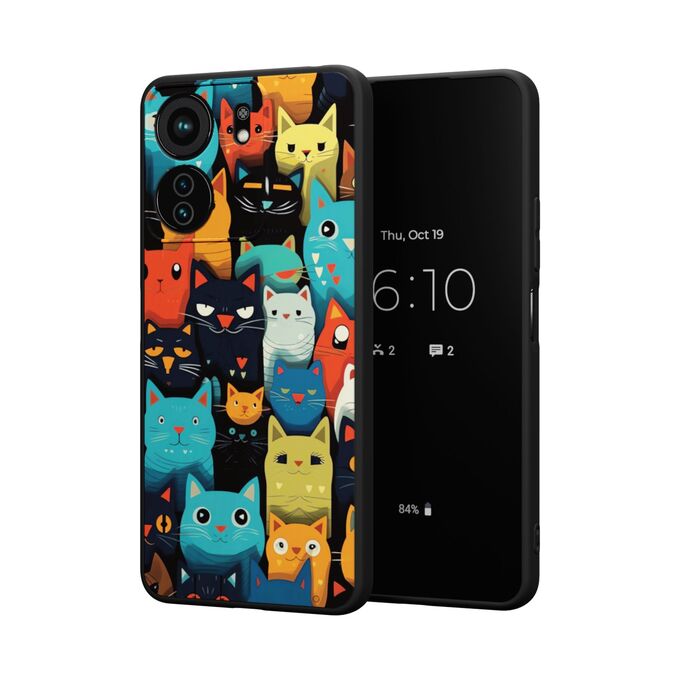 Силиконовый чехол DesignOnCase для Redmi 13C (Редми 13Ц), Разноцветные коты