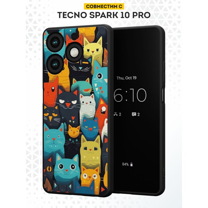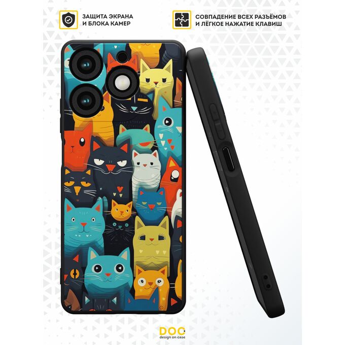 Силиконовый чехол DesignOnCase для Tecno Spark 10 Pro (Техно Спарк 10 Про), Разноцветные коты