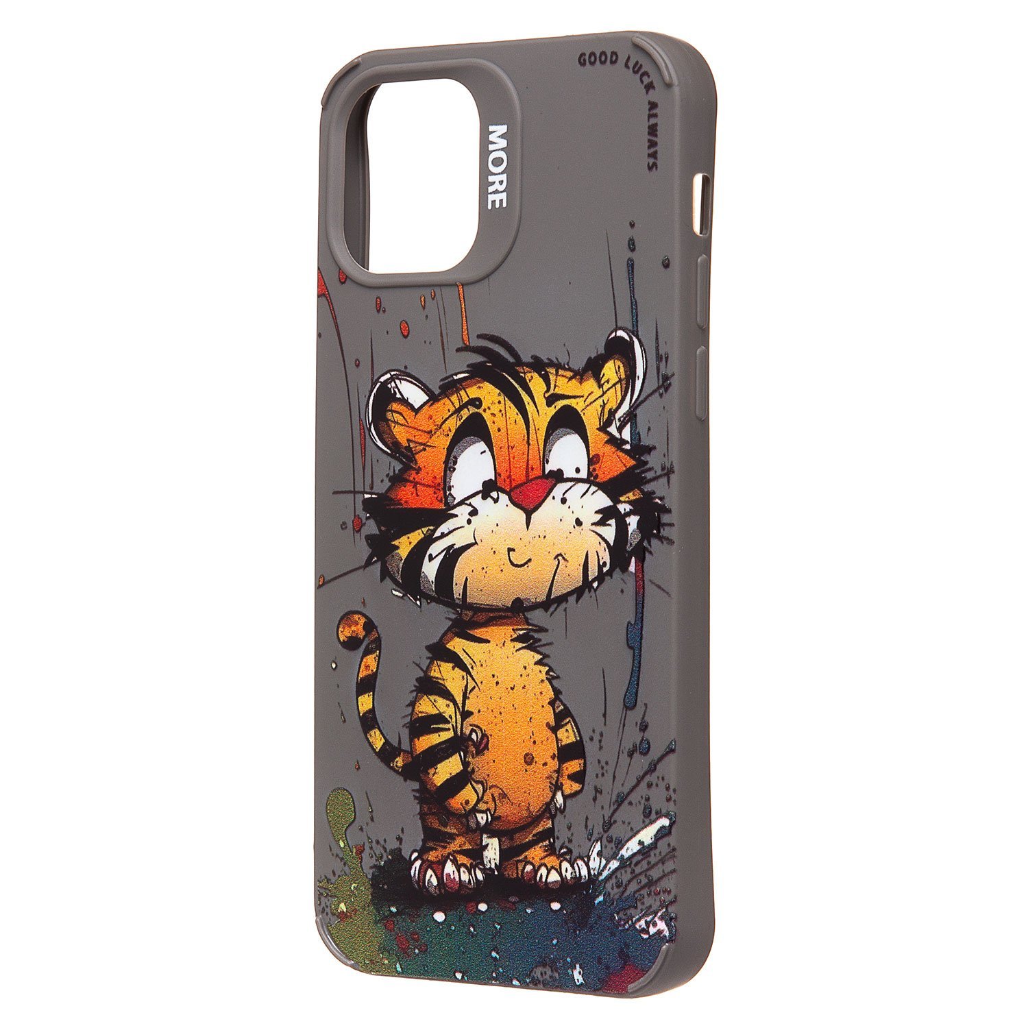 Силиконовый чехол SC335 на Apple iPhone 12/iPhone 12 Pro с красочным принтом, Тигр/ серый