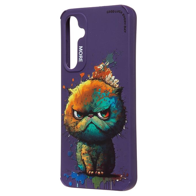 Силиконовый чехол SC335 на Samsung Galaxy S23 FE с красочным принтом, Кот/ фиолетовый