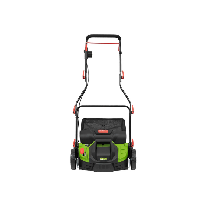 Ширина обработки составляет 36 см, что ускоряет процесс работы на больших участках. Текстильный травосборник объемом 45 литров обеспечивает удобство сбора травы, а система валиков с ножами и зубьями способствует качественной аэрации почвы. Легкий пластиковый корпус и небольшой вес делают скарификатор удобным в использовании и транспортировке. Максимальная мощность 2000 Вт, номинальная мощность 1800 Вт.
