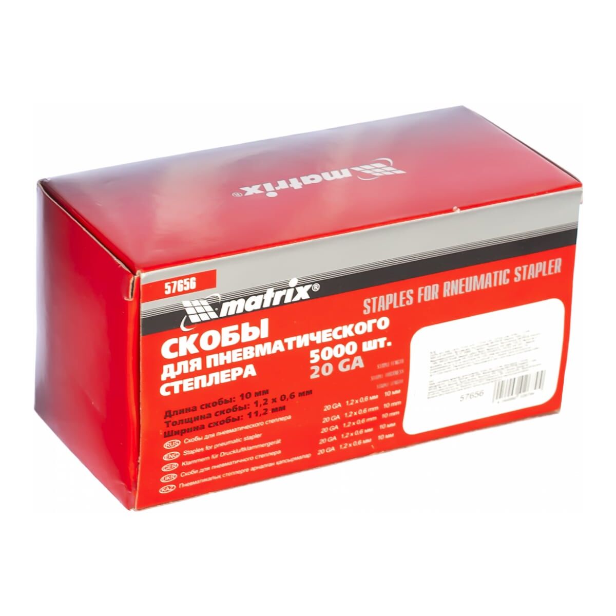 Скобы MATRIX 57656 для пнев. степл., 10x1,2x0,6, шир. скобы - 11,2 мм, 5000 шт
