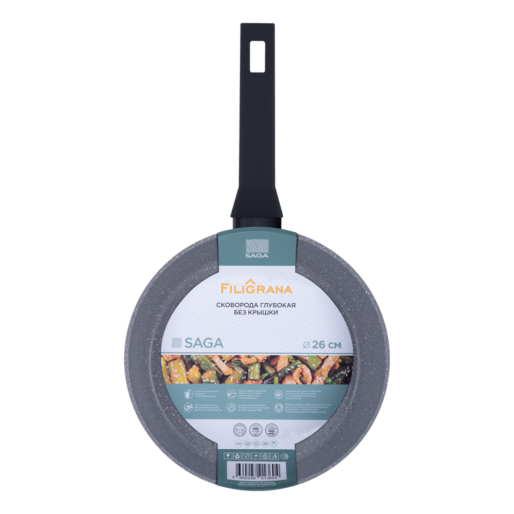 Сковорода глубокая FILIGRANA Saga FG26SGA01DF из кованого алюминия, 26см