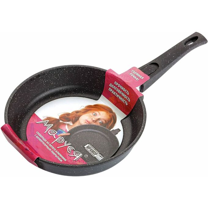 Сковорода МАРУСЯ 7022, а/п литая 22см съем/руч чёрный мрамор