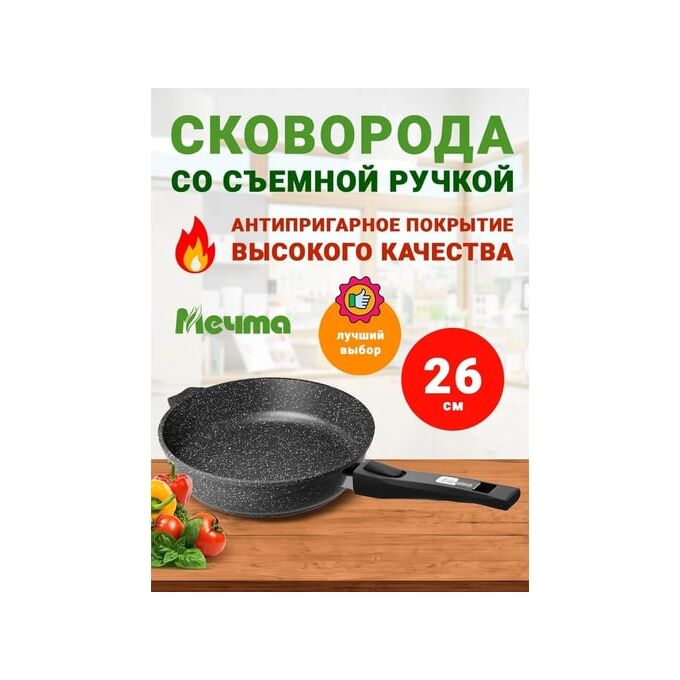 Сковорода МЕЧТА 026802 Гранит black 26см со съемной ручкой