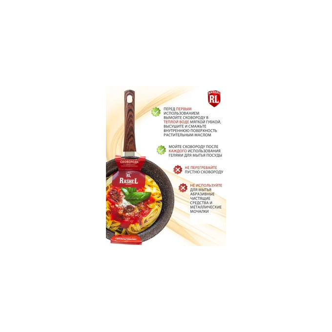 Сковорода 26 см RASHEL ТИТАН&ГРАНИТ: Превосходство в Кулинарии. Эта глубокая сковорода из литого алюминия с гранитным антипригарным покрытием RASHEL ТИТАН&ГРАНИТ – идеальное решение для гурманов и опытных поваров.