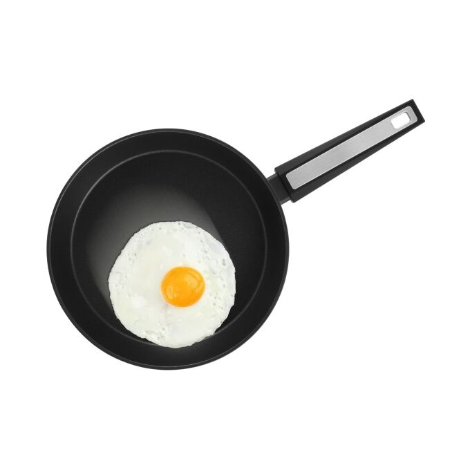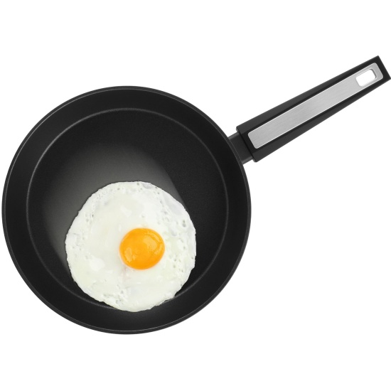 Изготовлено из кованого алюминия. Толщина стенок и дна – 3 мм. Прочное внутреннее двухслойное покрытие Xylan® Plus имеет превосходные антипригарные свойства. Не содержит PFOA. Безопасно для здоровья. Внешнее покрытие устойчиво к высоким температурам. Стильная бакелитовая ручка со стальной вставкой.