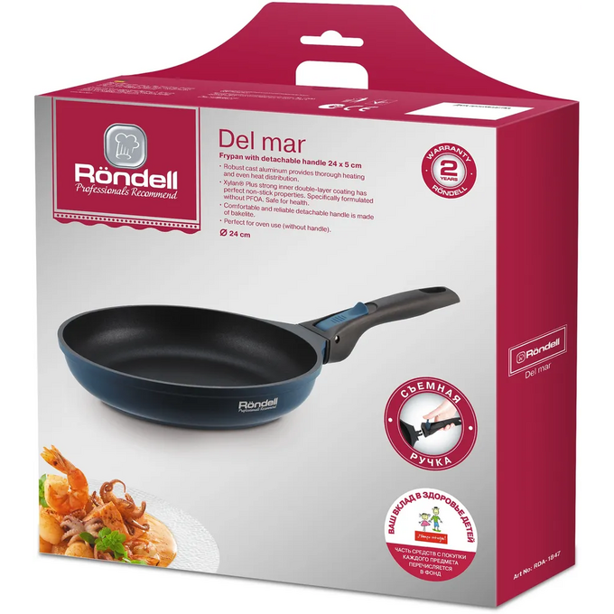 Сковорода Rondell Del mar RDA-1847 круглая 24см покрытие: Xylan Plus ручка съемная (без крышки) синий