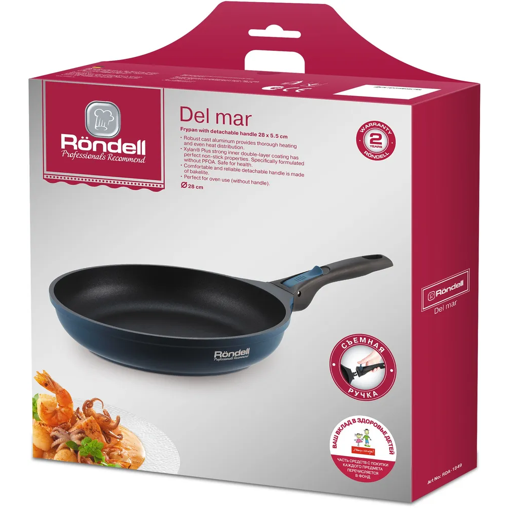 Сковорода Rondell Del mar RDA-1849 круглая 28см покрытие: Xylan Plus ручка съемная (без крышки) синий