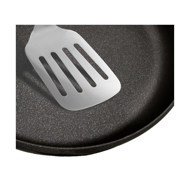 редпочитаете строгий, но при этом изысканный стиль? Представляем вашему вниманию коллекцию высококачественных сковород Glisset. Все они изготовлены из утолщенного кованого алюминия, поэтому прогреваются равномерно и обеспечивают идеальное приготовление блюд. Внешнее термостойкое покрытие сковород серого цвета стилизовано под нержавеющую сталь, поэтому они будут гармонично сочетаться с подобными кастрюлями, ковшами и сотейниками на вашей кухне. Эргономичная надежная стальная ручка обеспечивает особый комфорт в использовании посуды. Нельзя не сказать и о внутреннем трехслойном износостойком покрытии TriTitan®, с которым вы забудете о том, что продукты могут пригорать к поверхности сковороды. Готовьте с удовольствием!