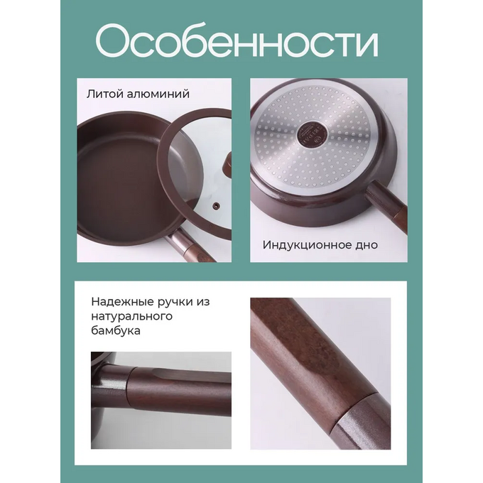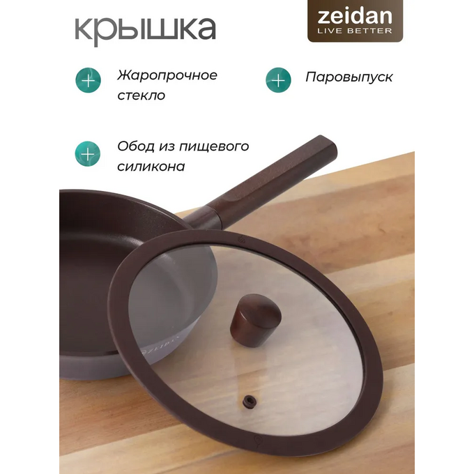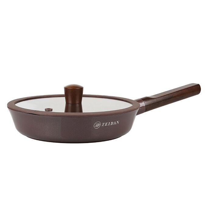 Сковорода ZEIDAN Z-90272 Mocco d 24 со стеклянной крышкой d 24х5см, литой алюминий, деревянная ручка