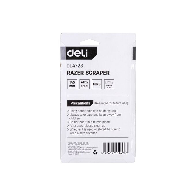 Скребок DELI DL4723 145 мм + 10 лезвий 98392 подходит для работ различного вида. Скребок оснащён лезвием из инструментальной стали SK5, высота лезвия 18 мм, а его толщина - 0.5 мм.