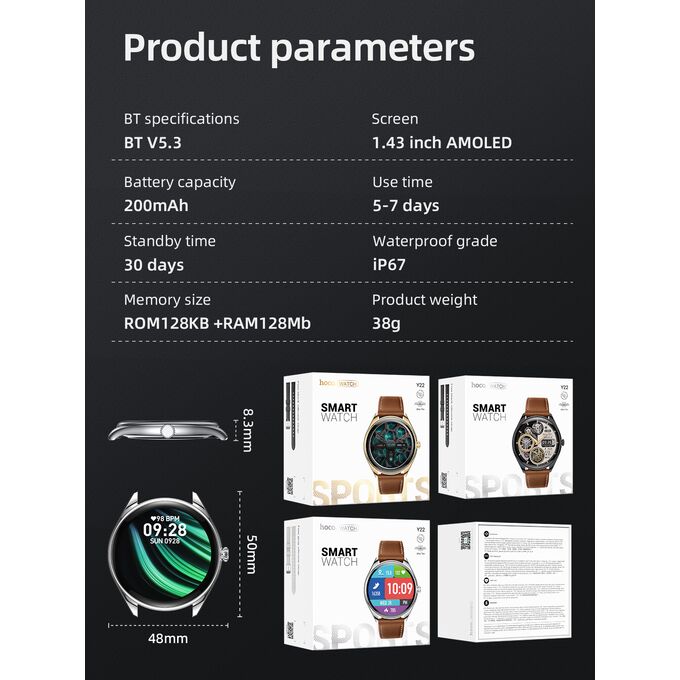 Смарт-часы HOCO Y22 AMOLED Smart sports watch(call version) (серебро)