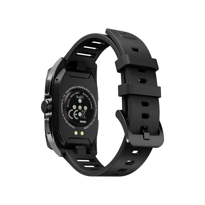 Смарт-часы iMiki MB1 обладают черным корпусом из металла и пластика, и черным ремешком из силикона. Экран с диагональю 1.64" и разрешением 456x280 точек выполнен по технологии AMOLED. Модель разрешается использовать во время бега. С помощью Bluetooth можно подключаться к смартфону, получать различные уведомления и осуществлять звонки.