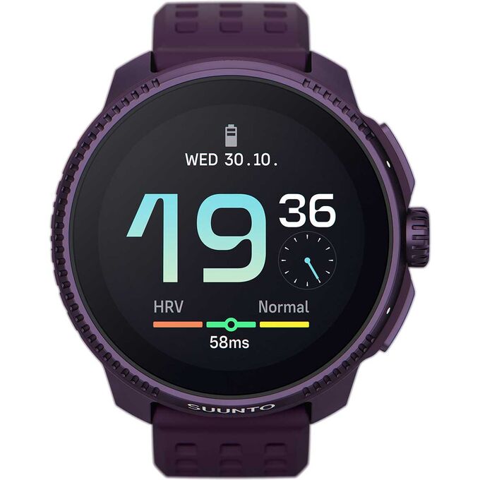 Этот многофункциональный аксессуар от Suunto станет незаменимым помощником на любой тренировке. Race Titanium Amethyst. Унисекс смарт-часы для занятий спортом, путешествий и экспедиций. Предустановлено более 95 спортивных режимов. Спутниковые системы навигации: GPS, ГЛОНАСС, Galileo, QZSS, BEIDOU. Поддержка оффлайн карт на часах. Оптическая технология измерения пульса - оптический датчик пульса на задней стороне часов испускает свет в запястье пользователя с помощью светодиодов и измеряет количество света, которое рассеивается кровотоком. Цветной сенсорный AMOLED циферблат 1,43‘’ с разрешением 466x466. Настраиваемые экраны и подсветка. Дополнительные функции: второй часовой пояс, секундомер, SPLIT-хронограф, таймер, будильник, время восхода/захода солнца, автоматический переход на зимнее и летнее время. Датчики: барометрический альтиметр, электронный компас, термометр. Синхронизация со смартфоном iOS и Android через Bluetooth с мобильным приложением Suunto. Приложение Suunto позволяет получать на часах уведомления с телефона. Отслеживание активности: дневная минимальная ЧСС, цели активности - шаги, калории. Отслеживание среднего пульса во сне, время сна и бодрствования, качество сна. Совместимость с поясами-кардиодатчиками Bluetooth Smart. Прогноз погоды. Предупреждение о шторме. Перезаряжаемый аккумулятор. Индикатор заряда аккумулятора. Время работы аккумулятора: в режиме времени - 26 дней, в режиме с круглосуточным отслеживанием и мобильными уведомлениями часов - до 12 дней, режим тренировки с GPS - до 40ч/50ч/70ч/120ч в зависимости от установленного режима работы от батареи. Рабочая температура от -20 °C до +55 °C. Часы оснащены собственной операционной системой Suunto. Вибро-оповещение. Блокировка циферблата во время тренировок. Цифровая переводная головка для быстрого доступа к функциям часов. Ремешок с классической застежкой.