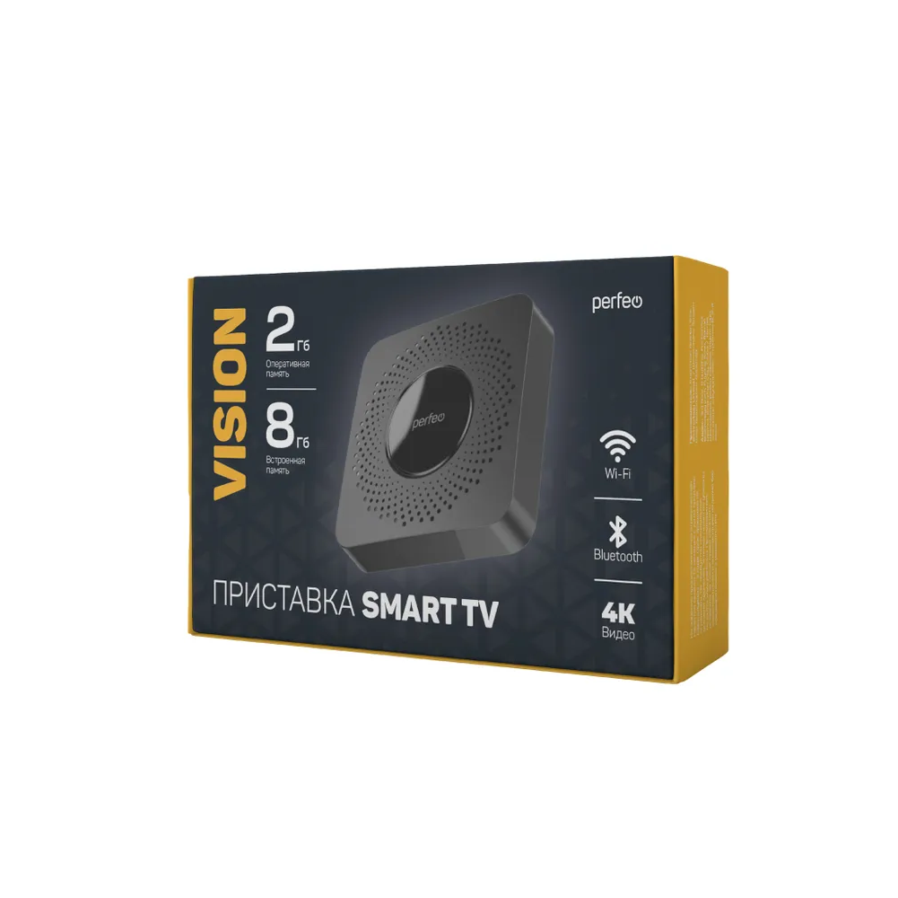 Смарт-ТВ приставки Perfeo Smart TV Box PF_A4559 Vision 2/8" Allwinner H618 Android 12, 2Gb/8Gb Пульт Bluetooth