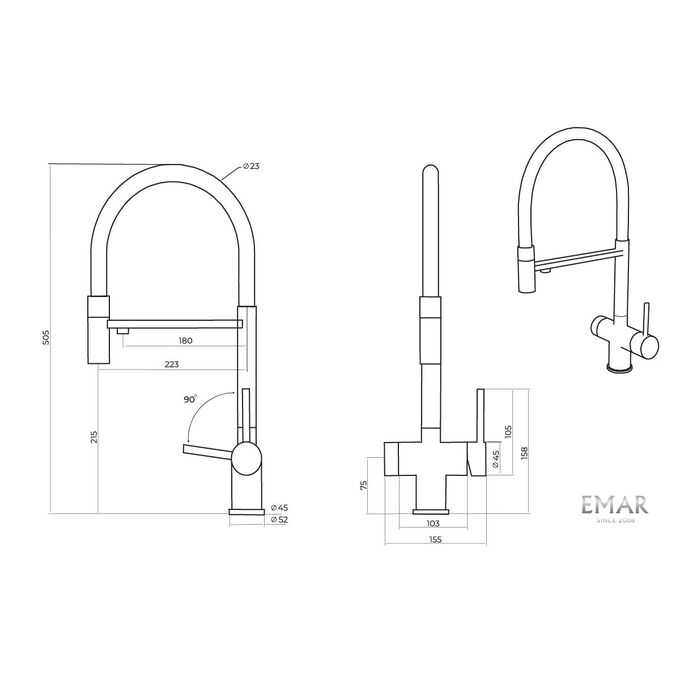 Смеситель для кухни Emar EC-7024 Matt Gold матовое золото