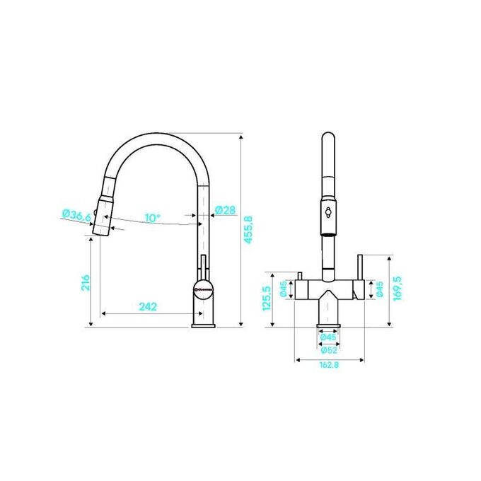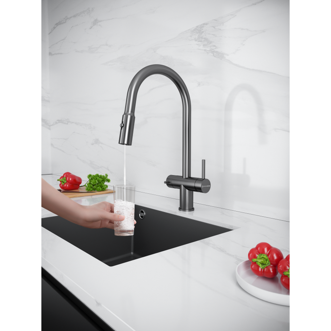 Смеситель для кухни KUCHENSTERN Brunn-FS 751GM80 нерж, вороненая сталь