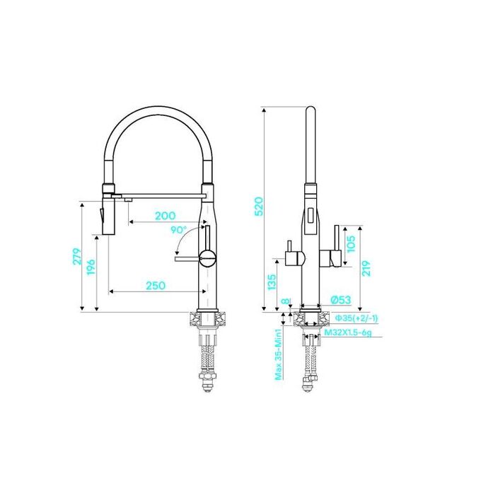 Смеситель для кухни KUCHENSTERN Elit-FE 407BL40 нерж, черный