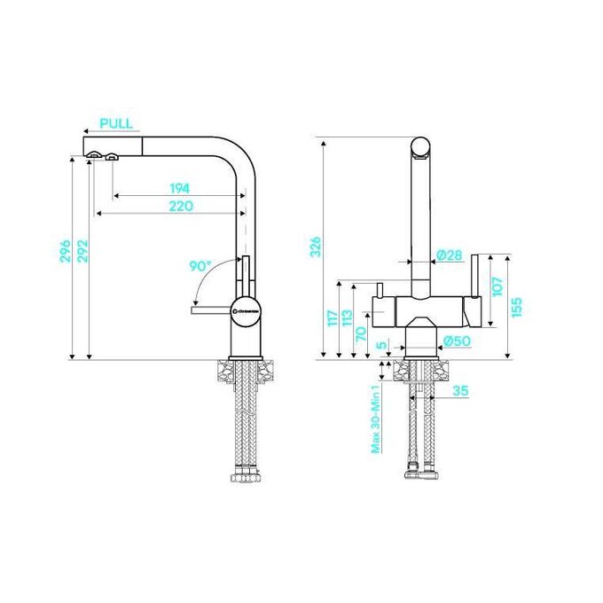 Смеситель для кухни KUCHENSTERN Fokus-FS 401BL40 нерж, черный