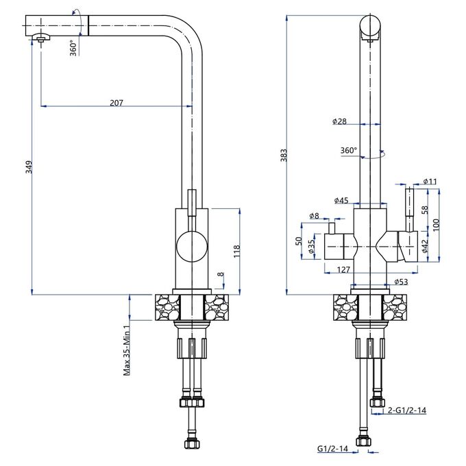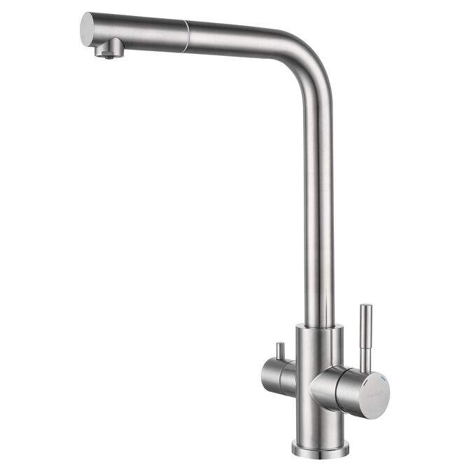 Смеситель Z-5421 изготовлен из нержавеющей стали и прослужит Вам долгие годы. Стильный и надёжный вариант прекрасно впишется в интерьер любой современной кухни. Смеситель оснащен: - краном с питьевой водой; - керамическим картриджем, диаметром 35 мм; - гибкой подводкой на 60см. Вращение излива позволит Вам удобно располагать его во время мойки посуды. в излив смесителя уже установлен аэратор, это экономит воду во время мытья, и сохраняет тишину.